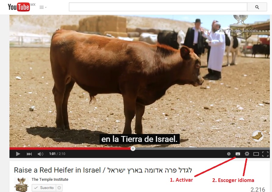Si los subtitulos en español no aparecen inmediatamente, actívelos haciendo click en los botones que se señalan en la siguiente imagen