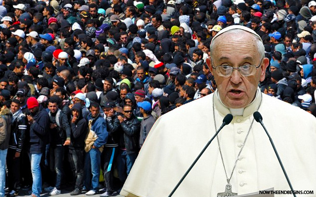 En este momento, los estados de la Unión Europea están siendo asediados por un mar de inmigrantes que buscan asilo en sus condados. Se cree que un buen número de estas personas son musulmanes indocumentados con vínculos terroristas con Al Qaeda y ISIS. Este tipo de yihad es conocida como la yihad biológica y es un gran éxito para ellos el cambio de composición de un país no musulmán en un país de mayoría musulmana. ¿Y quién está exigiendo que toda Europa acepten ciegamente decenas de miles de inmigrantes musulmanes indocumentados con vínculos terroristas con ISIS? El Papa Francisco.