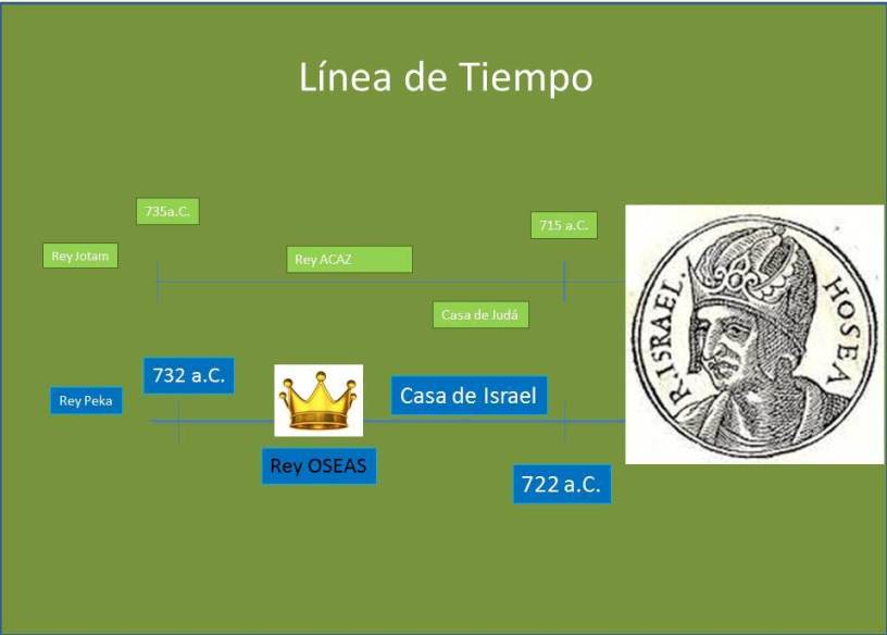 Dios es Salvación. Hijo de Ela y último rey de la Casa de Israel. Reinó durante el período 732-722 a.C. . Subió al trono poco después de que Tiglat-pileser, rey de Asiria, hubiera llevado cautivas algunas tribus, y sólo quedaba Efraín, Isacar y la media tribu de Manases. Oseas asesinó y sucedió a Peka (2 Reyes 15:30).