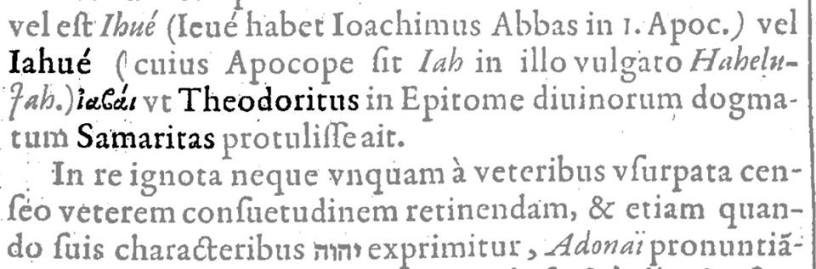 Génébrard nunca supo que los mismos Samaritanos siempre dijeron que ellos nunca pronunciaban el nombre יהוה, ni siquiera en la época de Moisés. Esto es confirmado por Josefo (antigüedades de los Judíos 12.5.5) quien cita una carta Samaritana a Antioco IV de los años 168 de la era común diciendo que ellos adoraban al Dios «SIN NOMBRE».