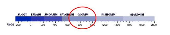 La figura del Gaón adquirió un papel prominente y decisivo en la transmisión y la enseñanza de la Torá y la ley judía. El más eminente de los Gueonim fue el rabino Sa’adia Gaón quién comenzó la «integración» de la teología judía con la filosofía griega. Es importante retener esta última información en azul para entender las futuras eras que aún faltan por desarrollar.