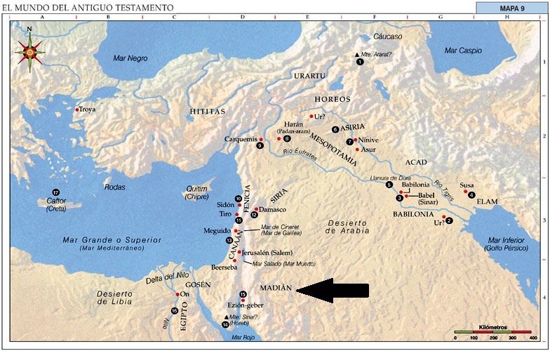 ¿Cuantos hemos estado en Madián? Todos hemos estado allí, todos hemos experimentado de una u otra forma y en diferentes intensidades lo que vivía Moisés dentro de sí. Por eso escogió el Eterno mandar a Moisés a Madián, la tierra de la pelea y de la competencia, para que él consiguiera su liderazgo, su camino, por donde aprendería «firmeza», esto es, coherencia entre lo que piensa (cree), habla y hace. En el monte Horeb (Horeb= Seco, desierto) fue donde encontró la «orientación». Moisés comenzó su misión al mismo tiempo que su formación, ambas cosas en paralelo.