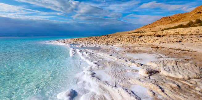 El Mar Muerto está, como su nombre lo indica, muerto. A más de 400 metros bajo el nivel del mar, es el punto más bajo en tierra firme. No puede existir vida en sus aguas ultra saladas y sus orillas están cubiertas con una gruesa capa de sal que mata a cualquier planta.
