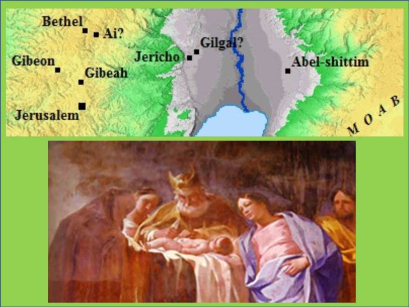 «Y el pueblo subió del Jordán el décimo día del primer mes, y acamparon en Gilgal, en el límite oriental de Yericho. Y esas doce piedras, que sacaron del Jordán, Josué lo estableció en Gilgal. « Josué 4:20