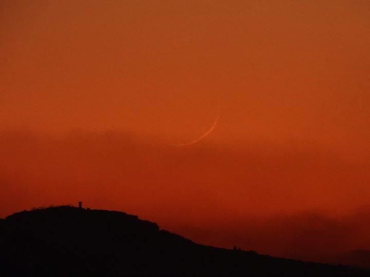 Becca Biderman ha informado haber visto la luna esta noche desde Poriyah Ilit (junto al mar de Galilea) a las 8:21 pm. Ella declaró: «Uno de los avistamientos más difíciles que he hecho. La megal o hoz de la luna era muy grande pero extremadamente delgada. Solo visible por unos breves minutos antes de que se deslizara en la bruma. Fue difícil enfocar la cámara antes de que desapareciera, no sabía si iba a hacer que sucediera «(foto 1)